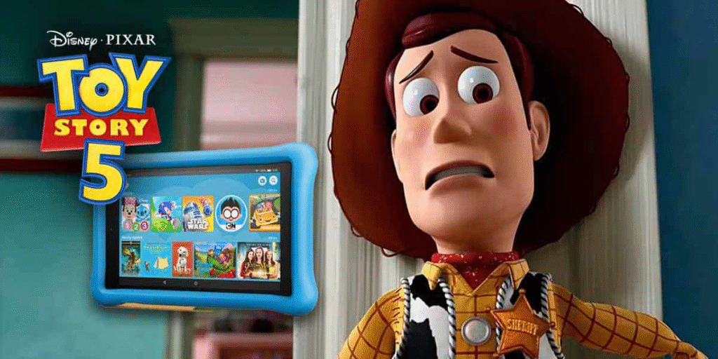 The tagline says it all. The age of toys is over. Three words that hit harder than any villain monologue in Pixar history. Because deep down, every millennial who grew up clutching their Woody doll knows this fight is already happening. Walk into any playroom today and you will see it. Kids glued to iPads. Toys collecting dust. The magic of imagination replaced by YouTube videos and mobile games. Toy Story 5 is not just a movie. It is a mirror reflecting a cultural shift that terrifies parents and fascinates children in equal measure.
